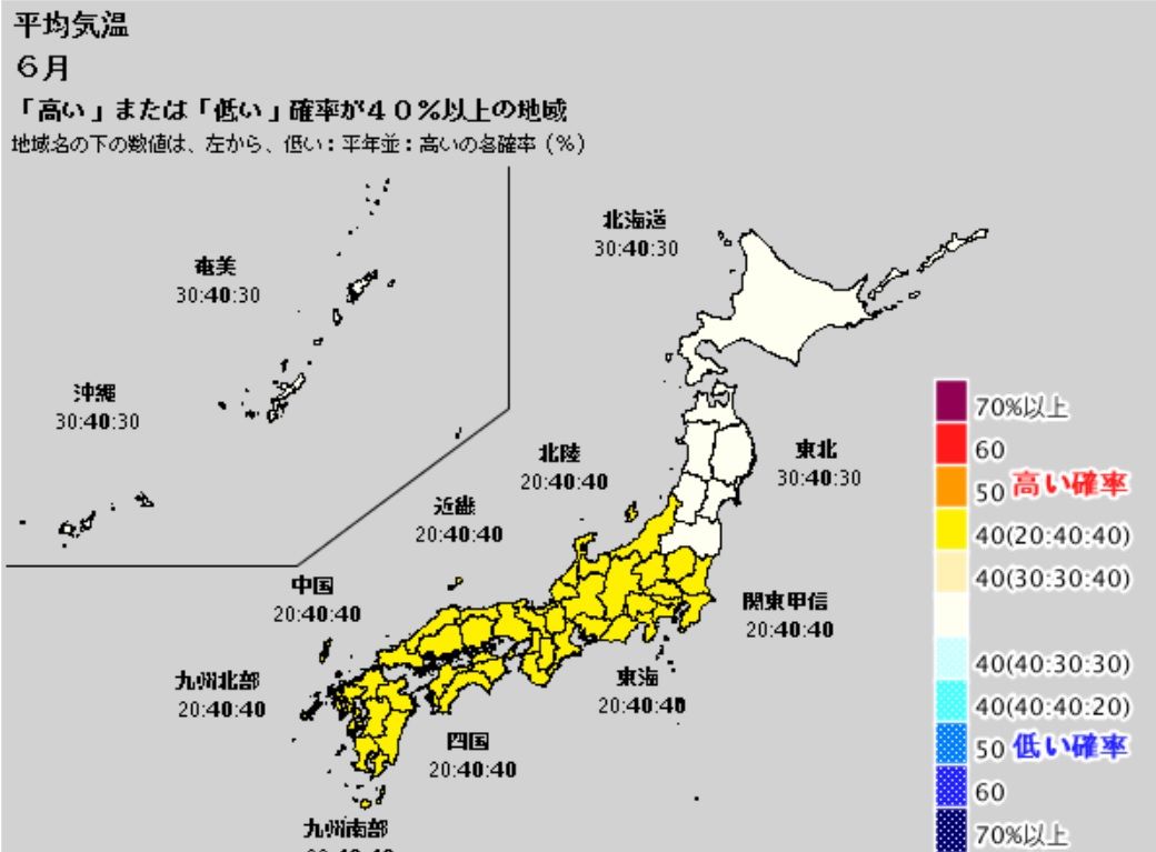 気象庁が6月と7月の、3ヶ月予報を発表しました。