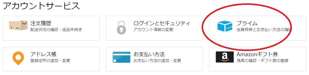 2 アカウントサービス画面の「プライム」を選択
